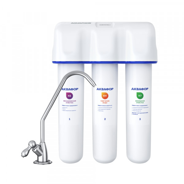 Не забывайте учитывать и срок службы фильтра: он указан в паспорте и определяет, когда модуль нужно заменить, даже если ресурс активной фильтрации в литрах еще есть.4000Скорость фильтрации2 л/минРабочая температура, °C5-40Высота, смОбратите внимание на габариты фильтра и измерьте, сколько свободного пространства в предполагаемом месте установки.37,5Число ступеней очисткиКартриджи последовательно очищают воду и от видимых примесей, и от растворенных. Первый картридж задерживает более крупные частицы, а каждый последующий - более мелкие. Чем больше ступеней - тем лучше фильтр очистит воду: поймает более мелкие видимые частицы ржавчины, песка и ила, успеет захватить из воды максимум растворенных примесей - хлора, нитратов, тяжелых металлов и других.3Фильтрующий модуль в комплектедаОтдельный крандаДавление в водопроводе не более, атмМаксимальное давление воды на входе в систему, при котором возможна стабильная работа фильтра.6,5Ширина, смОбратите внимание на габариты фильтра, и измерьте, сколько свободного пространства в предполагаемом месте установки.28,0Глубина, смОбратите внимание на габариты фильтра, и измерьте, сколько свободного пространства в предполагаемом месте установки.10,5Защита корпуса от гидроударовдаИсходная водаЖесткая вода – вода с избытком минеральных солей. От нее появляется накипь в чайнике, известковый налет на сантехнике и разводы на посуде. Мягкая вода – та, в которой мало минеральных солей. Нет накипи в чайнике и разводов на посуде. Фильтры для мутной воды и фильтры от ржавчины, как правило, имеют несколько стадий очистки и дополнительный полипропиленовый картридж. Он задерживает механические частицы ила, песка и ржавчины и защищает картриджи более глубокой очистки.жёсткаяЗащита от бактерийВсе проточные фильтры в той или иной степени защищают от бактерий. Например, добавление серебра препятствует их размножению. Это стандартная степень защиты. Если в семье есть дети, пожилые люди или аллергики, воду рекомендуется обеззараживать, то есть полностью удалять микроорганизмы. Повышенную защиту от бактерий дают фильтры с половолоконной мембраной. Это пучок трубок с порами размером 0,1 микрон (что в 1000 раз тоньше человеческого волоса) - бактерии и яйца паразитов “застревают”, как в “сите”. Полученную воду не придется кипятить и можно использовать для приготовления детского питания. Абсолютную защиту обеспечат фильтры обратного осмоса, которые не пропускают через обратноосмотическую мембрану ничего, кроме воды.стандартнаяПоловолоконная мембранаЭто пучок трубок с порами размером 0,1 микрон (что в 1000 раз тоньше человеческого волоса). Бактерии и яйца паразитов “застревают”, как в “сите”. Полученную воду не придется кипятить и можно использовать для приготовления детского питания.нетУдобно менять модулидаЗанимает мало местада
