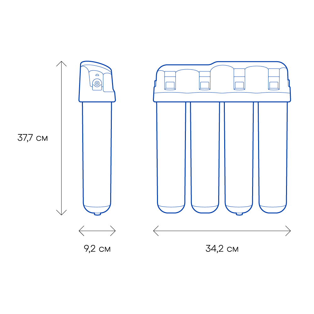 Обратноосмотические фильтры используются для абсолютной защиты от накипи, т.к. полностью устраняют соли жесткости из воды.нетЧисло ступеней очисткиКартриджи последовательно очищают воду и от видимых примесей, и от растворенных. Первый картридж задерживает более крупные частицы, а каждый последующий - более мелкие. Чем больше ступеней - тем лучше фильтр очистит воду: поймает более мелкие видимые частицы ржавчины, песка и ила, успеет захватить из воды максимум растворенных примесей - хлора, нитратов, тяжелых металлов и других.4МинерализацияПроисходит после финишной очистки воды. Необходима прежде всего в фильтре обратного осмоса, поскольку такой фильтр полностью устраняет из воды все примеси, в том числе минералы. Минералы добавляются в оптимальной концентрации - для пользы и привычного вкуса воды.нетПостфильтрацияФинальный этап очистки воды: картриджи постфильтрации удаляют самые мелкие механические частицы и кондиционируют воду, придавая ей более приятный вкус.нетНакопительная емкостьОбычно нужна в фильтрах обратного осмоса. Глубокая фильтрация требует времени. Чтобы Вам не приходилось ждать, пока вода наберется в чайник или кастрюлю, почти во всех моделях используется накопительный бак для чистой воды или другая емкость. В стандартном фильтре обратного осмоса под мойку воды в баке достаточно для семьи из 5-6 человек.нетФильтрующий модуль в комплектедаОтдельный крандаДавление в водопроводе не более, атмМаксимальное давление воды на входе в систему, при котором возможна стабильная работа фильтра.6,5Ширина, смОбратите внимание на габариты фильтра, и измерьте, сколько свободного пространства в предполагаемом месте установки.37,7Глубина, смОбратите внимание на габариты фильтра, и измерьте, сколько свободного пространства в предполагаемом месте установки.9,2Защита корпуса от гидроударовдаИсходная водаЖесткая вода – вода с избытком минеральных солей. От нее появляется накипь в чайнике, известковый налет на сантехнике и разводы на посуде. Мягкая вода – та, в которой мало минеральных солей. Нет накипи в чайнике и разводов на посуде. Фильтры для мутной воды и фильтры от ржавчины, как правило, имеют несколько стадий очистки и дополнительный полипропиленовый картридж. Он задерживает механические частицы ила, песка и ржавчины и защищает картриджи более глубокой очистки.мягкаяУстраняет мутностьМутность водопроводной воды может говорить о том, что в ней много мелких механических частиц. Важно, чтобы в фильтре был установлен дополнительные картридж механической предфильтрации (полипропиленовый) - он продлит жизнь остальным картриджам более тонкой очистки.даУстраняет ржавчину, бурый осадокЛюбой фильтр под мойку удалит из воды крупные и мелкие частицы ржавчины. Некоторые фильтры имеют повышенный ресурс по железу: они дольше служат в такой воде, поскольку лучше подходят для удаления из воды железа и механических частиц ржавчины.нетЗащита от бактерийВсе проточные фильтры в той или иной степени защищают от бактерий. Например, добавление серебра препятствует их размножению. Это стандартная степень защиты. Если в семье есть дети, пожилые люди или аллергики, воду рекомендуется обеззараживать, то есть полностью удалять микроорганизмы. Повышенную защиту от бактерий дают фильтры с половолоконной мембраной. Это пучок труб