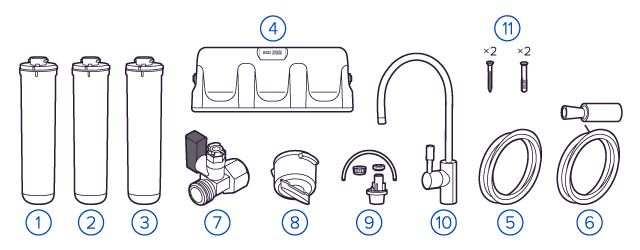 Финальный этап очистки воды: картриджи постфильтрации удаляют самые мелкие механические частицы и кондиционируют воду, придавая ей более приятный вкус.