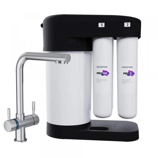 Обратноосмотические фильтры используются для абсолютной защиты от накипи, т.к. полностью устраняют соли жесткости из воды.даЧисло ступеней очисткиКартриджи последовательно очищают воду и от видимых примесей, и от растворенных. Первый картридж задерживает более крупные частицы, а каждый последующий - более мелкие. Чем больше ступеней - тем лучше фильтр очистит воду: поймает более мелкие видимые частицы ржавчины, песка и ила, успеет захватить из воды максимум растворенных примесей - хлора, нитратов, тяжелых металлов и других.6МинерализацияПроисходит после финишной очистки воды. Необходима прежде всего в фильтре обратного осмоса, поскольку такой фильтр полностью устраняет из воды все примеси, в том числе минералы. Минералы добавляются в оптимальной концентрации - для пользы и привычного вкуса воды.даПостфильтрацияФинальный этап очистки воды: картриджи постфильтрации удаляют самые мелкие механические частицы и кондиционируют воду, придавая ей более приятный вкус.даНакопительная емкостьОбычно нужна в фильтрах обратного осмоса. Глубокая фильтрация требует времени. Чтобы Вам не приходилось ждать, пока вода наберется в чайник или кастрюлю, почти во всех моделях используется накопительный бак для чистой воды или другая емкость. В стандартном фильтре обратного осмоса под мойку воды в баке достаточно для семьи из 5-6 человек.даФильтрующий модуль в комплектедаОтдельный крандаДавление в водопроводе не менее, атм2,0Давление в водопроводе не более, атмМаксимальное давление воды на входе в систему, при котором возможна стабильная работа фильтра.6,5Защита корпуса от гидроударовдаИсходная водаЖесткая вода – вода с избытком минеральных солей. От нее появляется накипь в чайнике, известковый налет на сантехнике и разводы на посуде. Мягкая вода – та, в которой мало минеральных солей. Нет накипи в чайнике и разводов на посуде. Фильтры для мутной воды и фильтры от ржавчины, как правило, имеют несколько стадий очистки и дополнительный полипропиленовый картридж. Он задерживает механические частицы ила, песка и ржавчины и защищает картриджи более глубокой очистки.любаяУстраняет мутностьМутность водопроводной воды может говорить о том, что в ней много мелких механических частиц. Важно, чтобы в фильтре был установлен дополнительные картридж механической предфильтрации (полипропиленовый) - он продлит жизнь остальным картриджам более тонкой очистки.даУстраняет ржавчину, бурый осадокЛюбой фильтр под мойку удалит из воды крупные и мелкие частицы ржавчины. Некоторые фильтры имеют повышенный ресурс по железу: они дольше служат в такой воде, поскольку лучше подходят для удаления из воды железа и механических частиц ржавчины.даЗащита от бактерийВсе проточные фильтры в той или иной степени защищают от бактерий. Например, добавление серебра препятствует их размножению. Это стандартная степень защиты. Если в семье есть дети, пожилые люди или аллергики, воду рекомендуется обеззараживать, то есть полностью удалять микроорганизмы. Повышенную защиту от бактерий дают фильтры с половолоконной мембраной. Это пучок трубок с порами размером 0,1 микрон (что в 1000 раз тоньше человеческого волоса) - бактерии и яйца паразитов “застревают”, как в “сите”. Полученную воду не придется кипятить и можно использовать для приготовления детского питания. Абсол